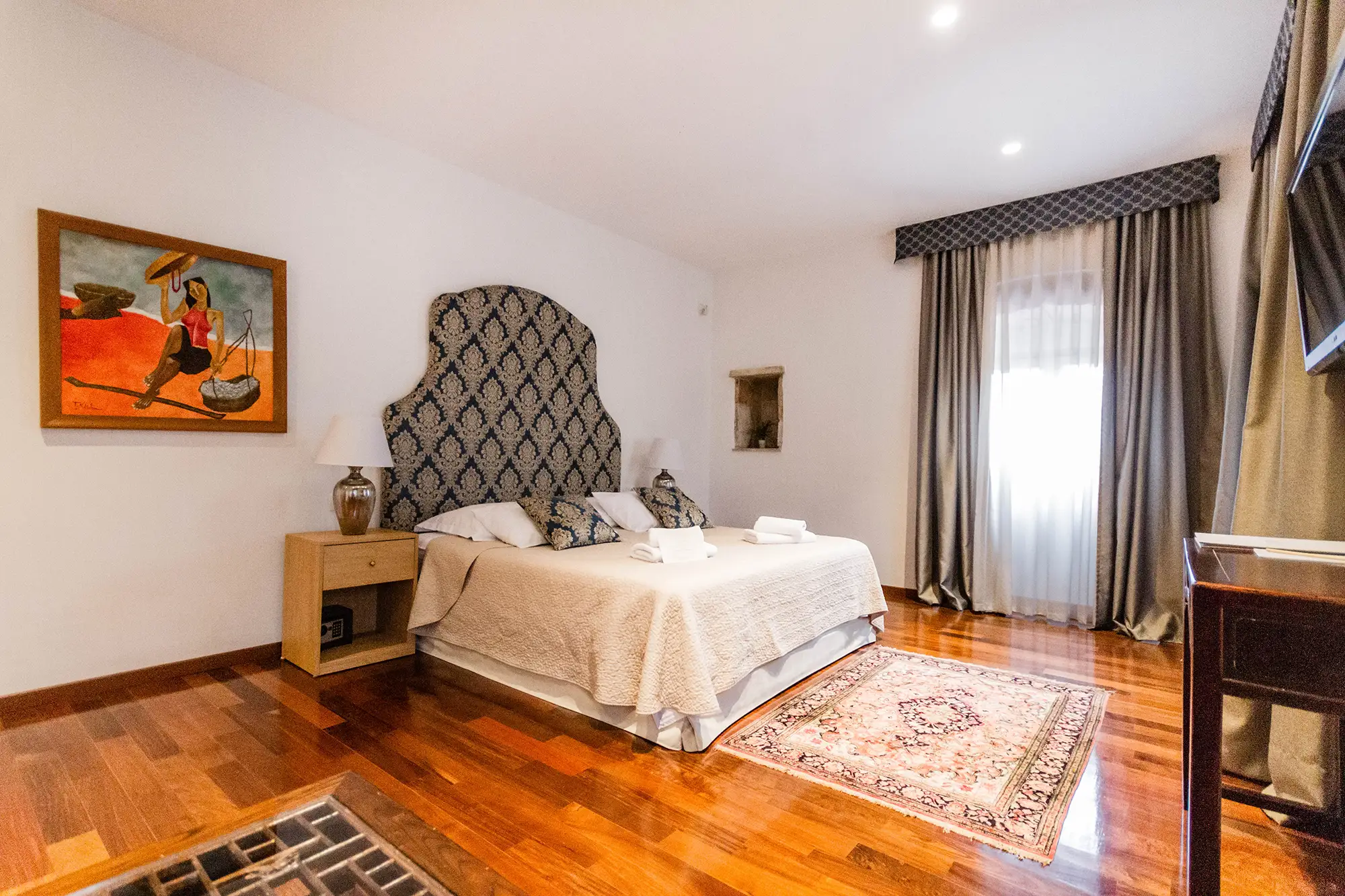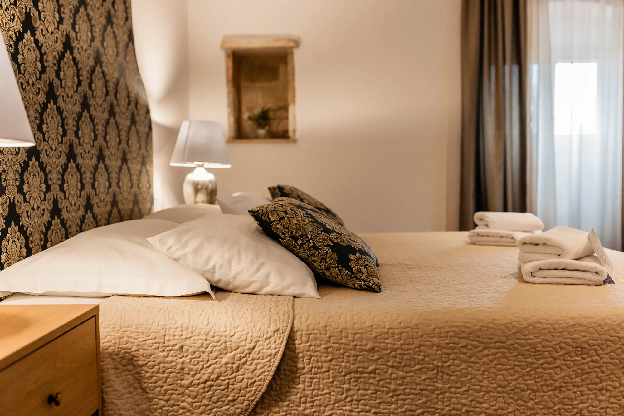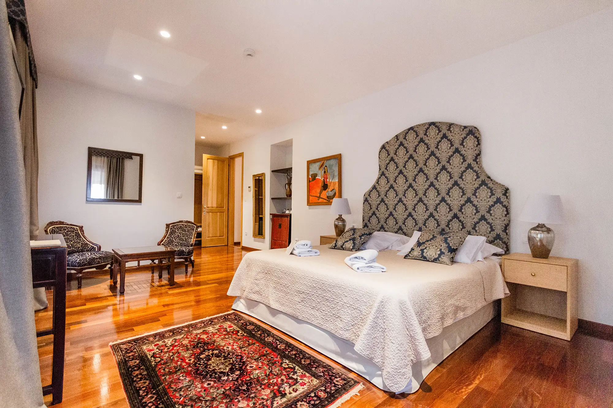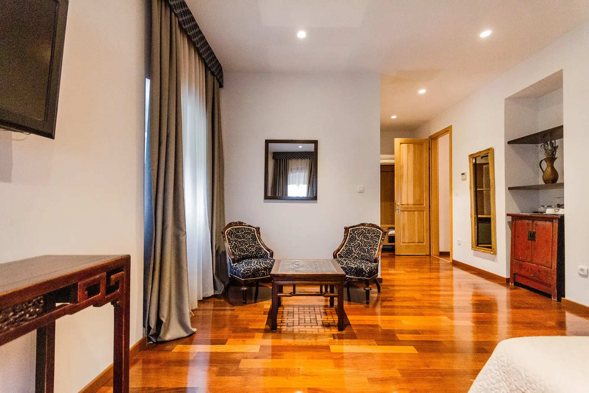 Superior soba Klio površine 36 m2, s pogledom na vrt. Sastoji se od velike spavaće sobe s tapeciranim super king size krevetom, ormara, sjedećeg prostora i kupaonice s tušem. Namještena u toplim nijansama s tamnim detaljima.