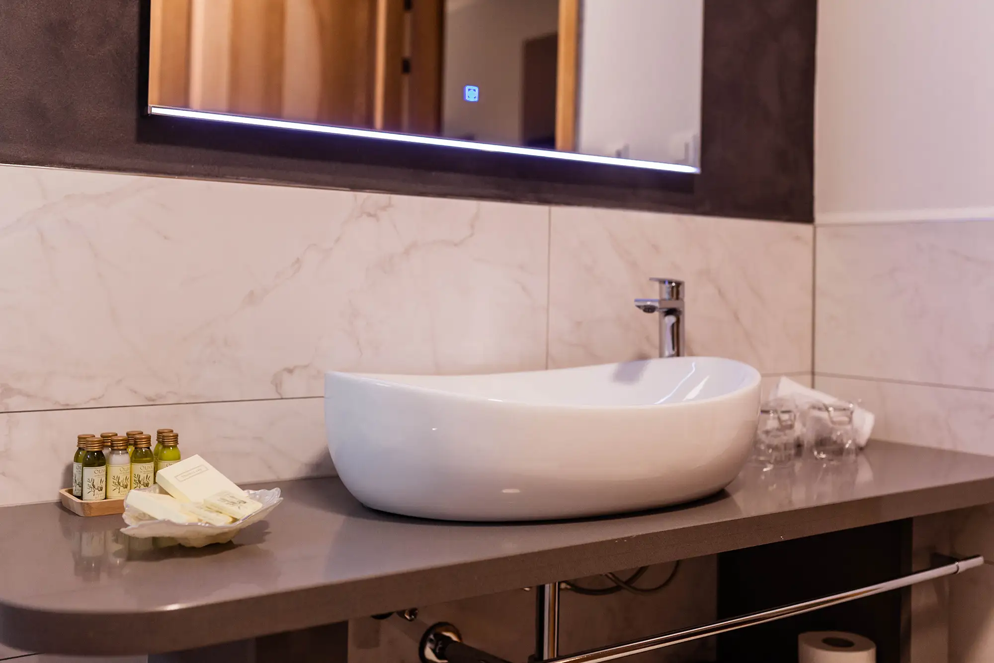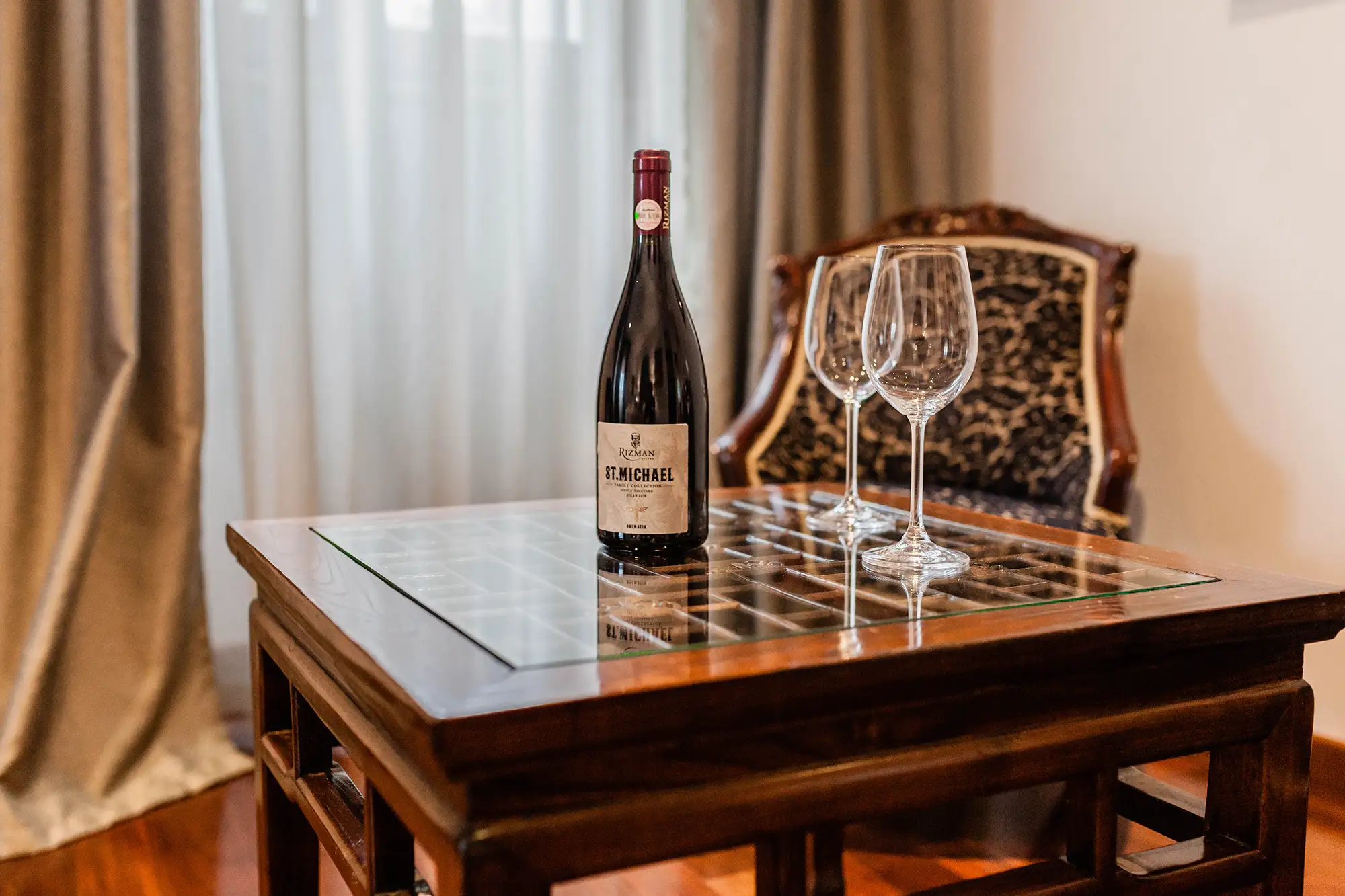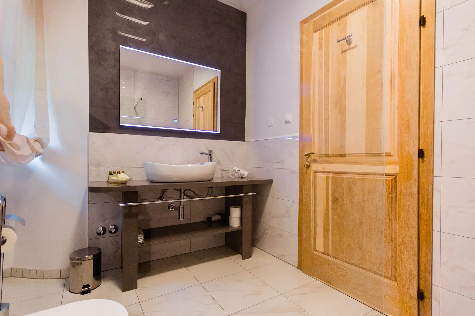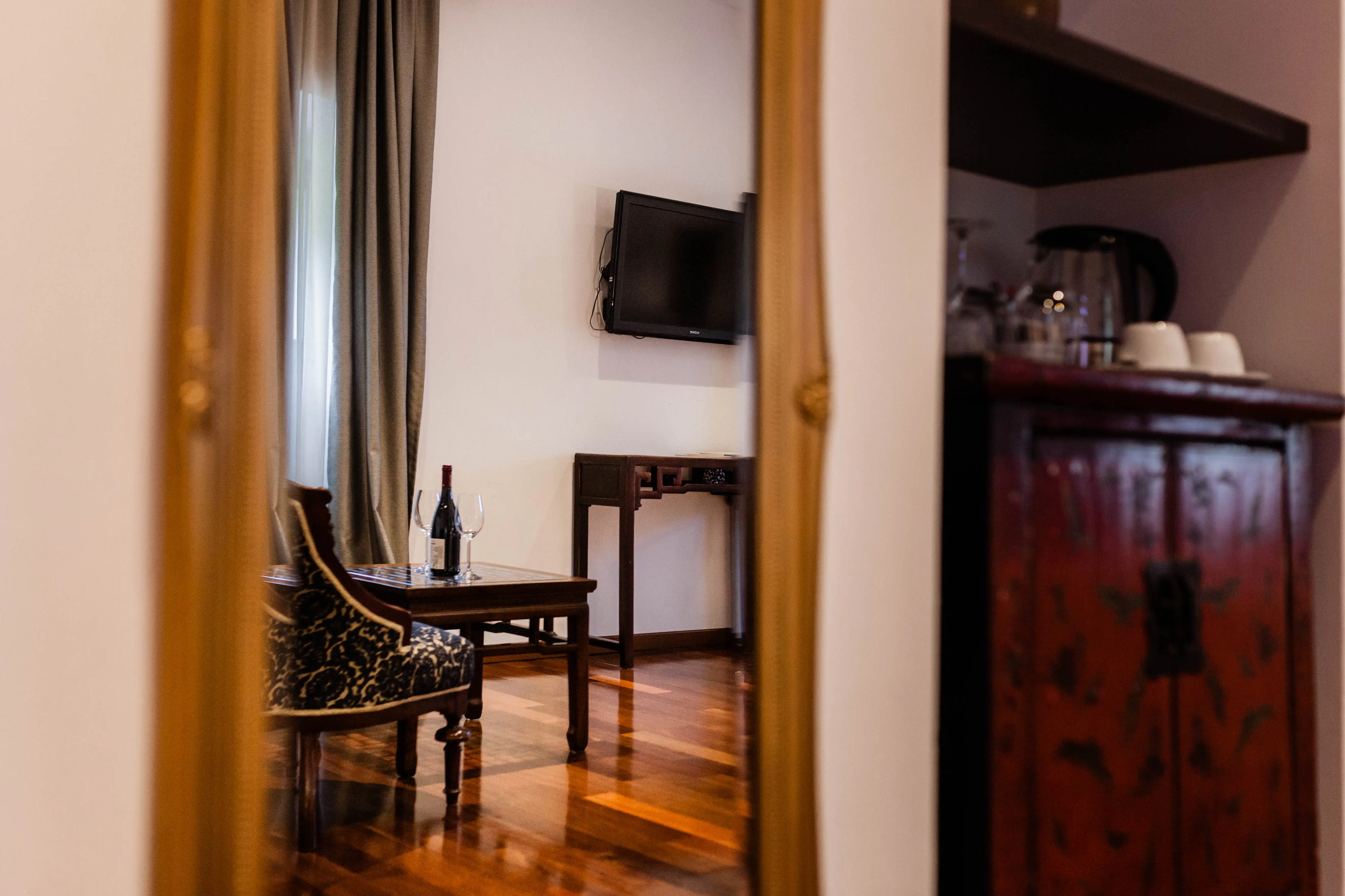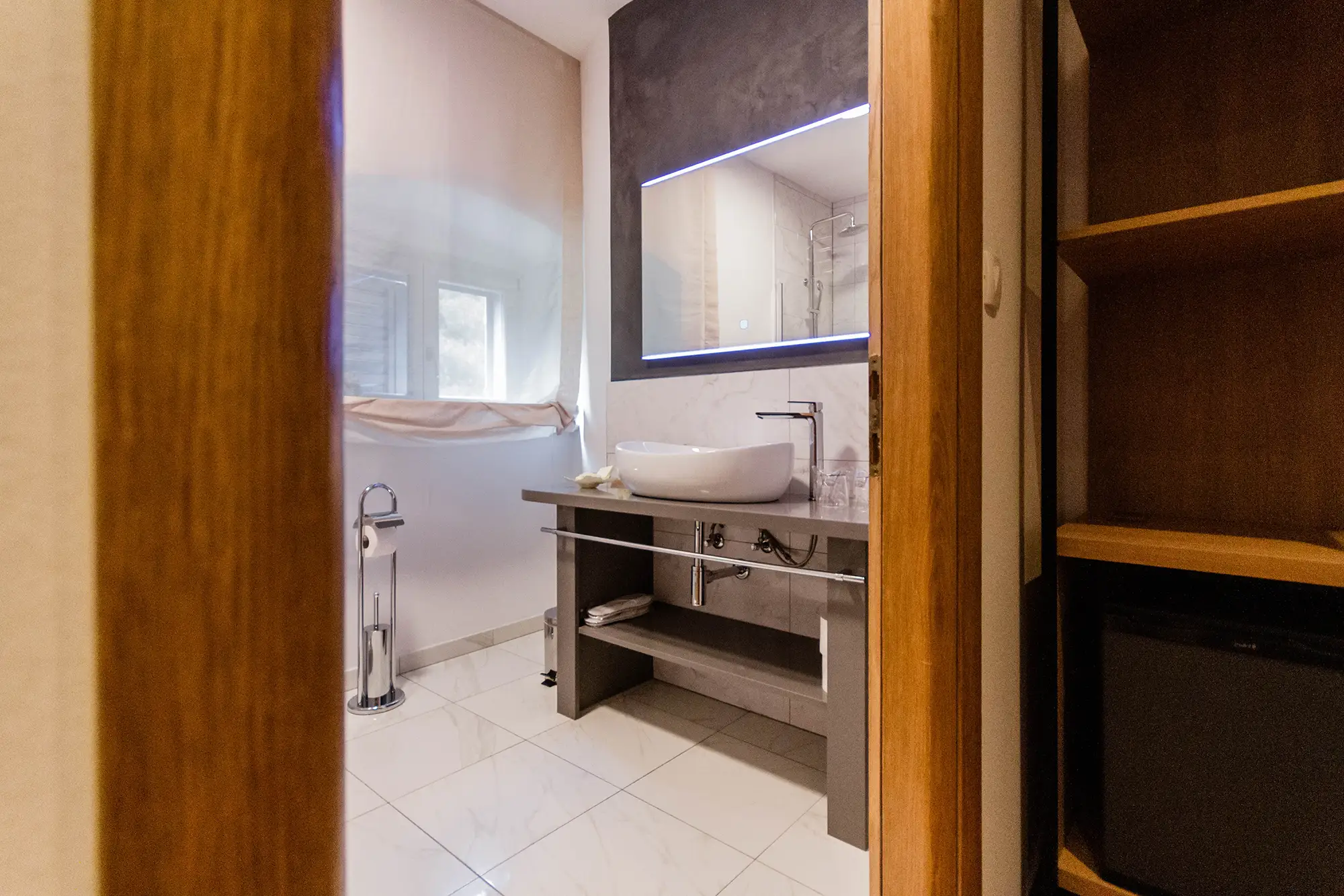 Superior soba Klio površine 36 m2, s pogledom na vrt. Sastoji se od velike spavaće sobe s tapeciranim super king size krevetom, ormara, sjedećeg prostora i kupaonice s tušem. Namještena u toplim nijansama s tamnim detaljima.