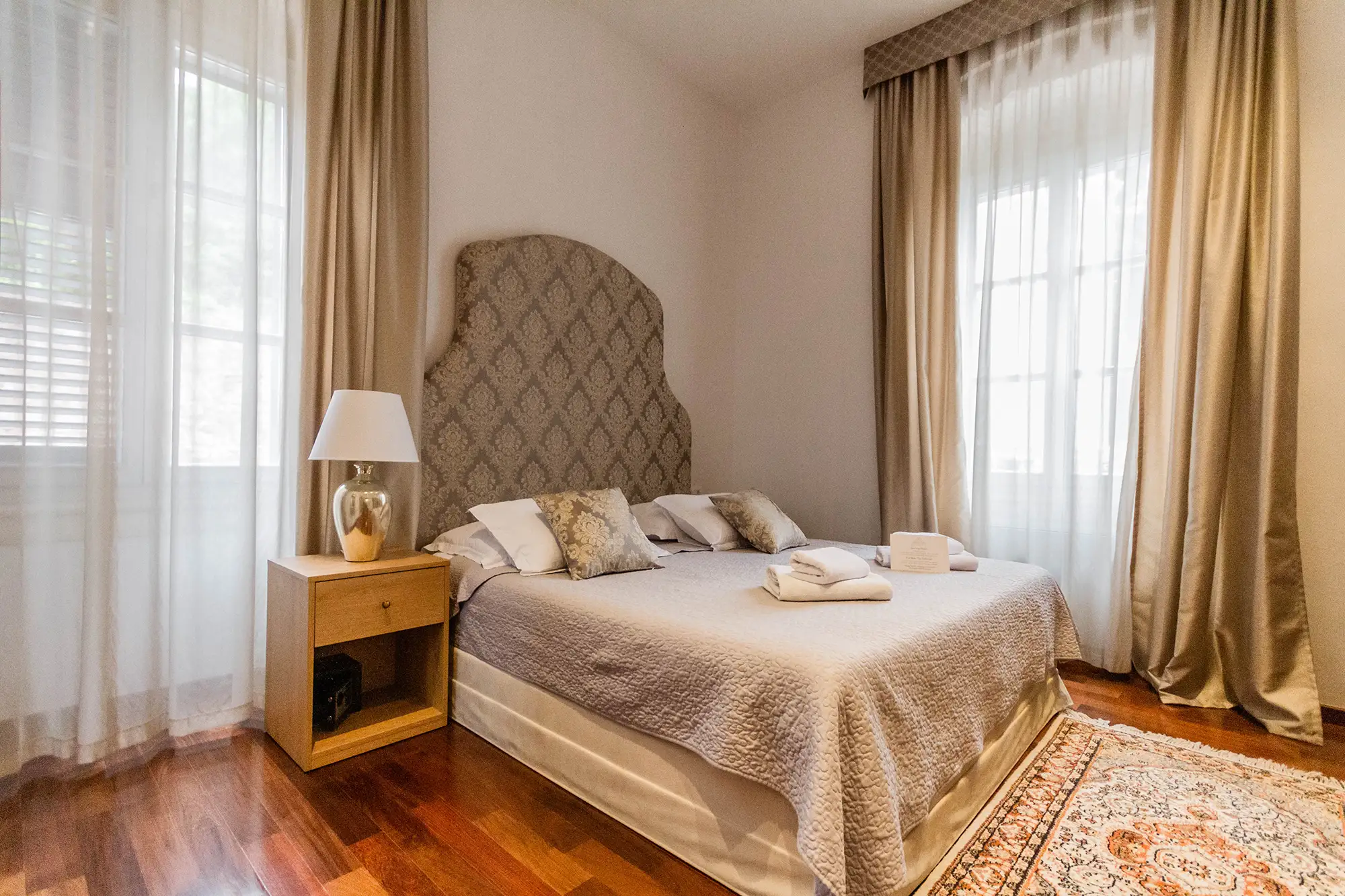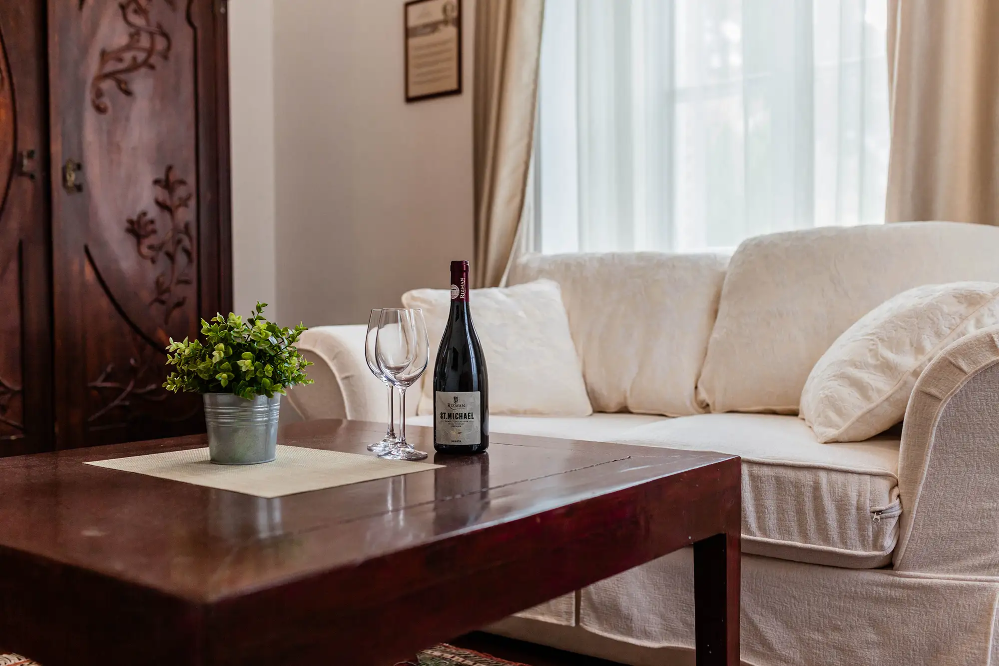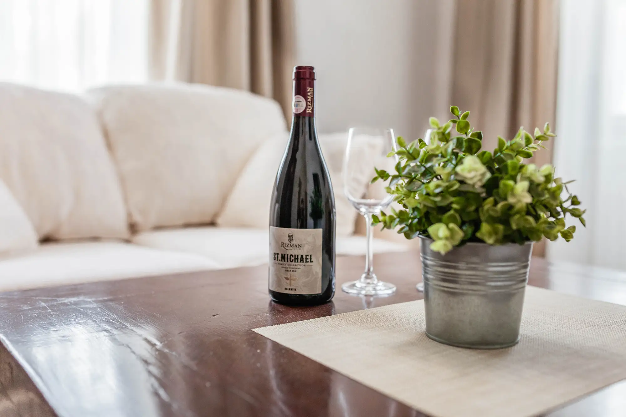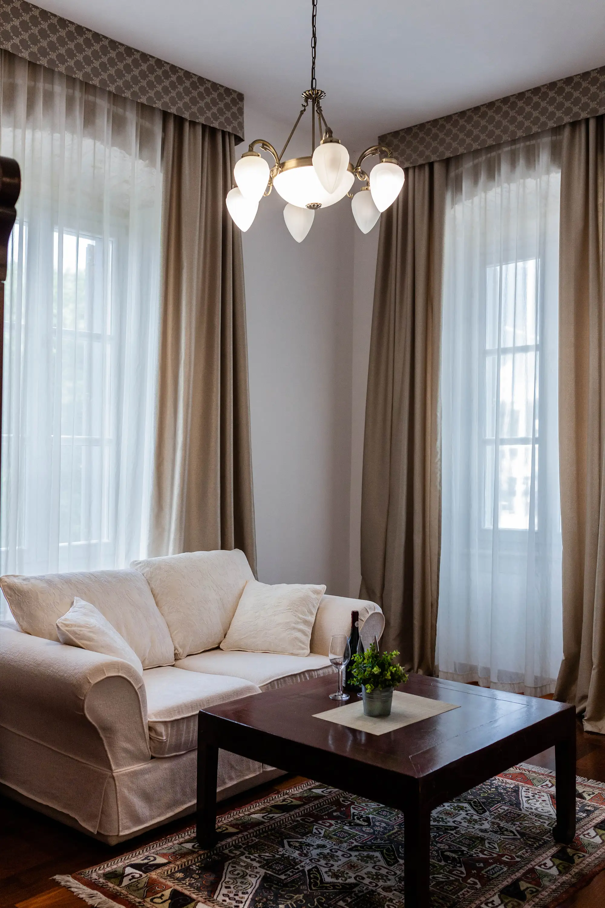 Luksuzni apartman Erato površine 48 m2, s prekrasnim pogledom na more. Sastoji se od velike spavaće sobe s tapeciranim super king size krevetom, ormara, odvojenog dnevnog boravka i kupaonice s tušem. Namješten je u toplim, bež tonovima.