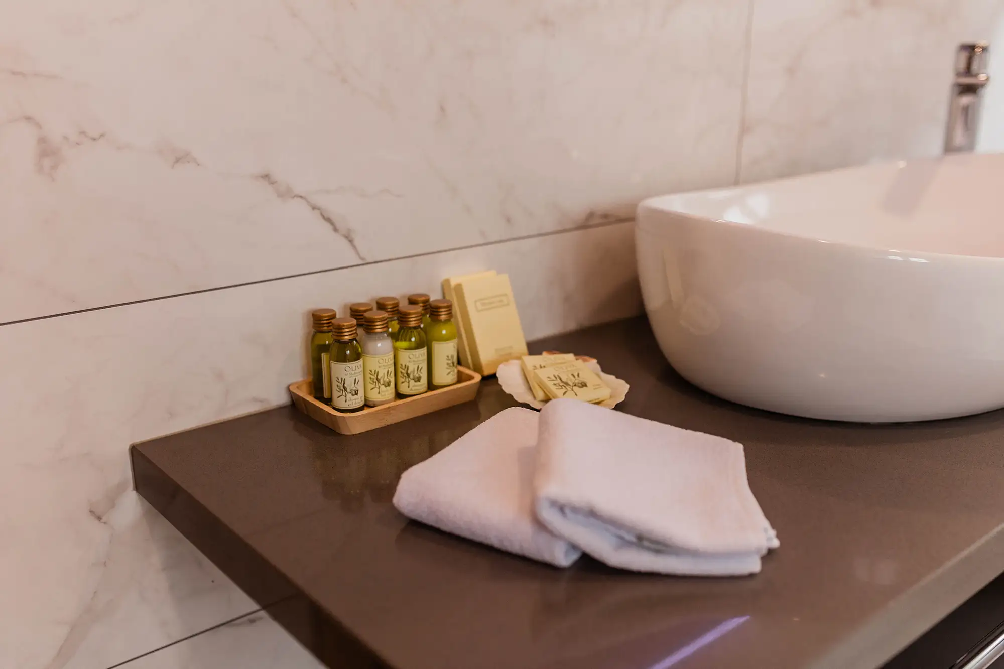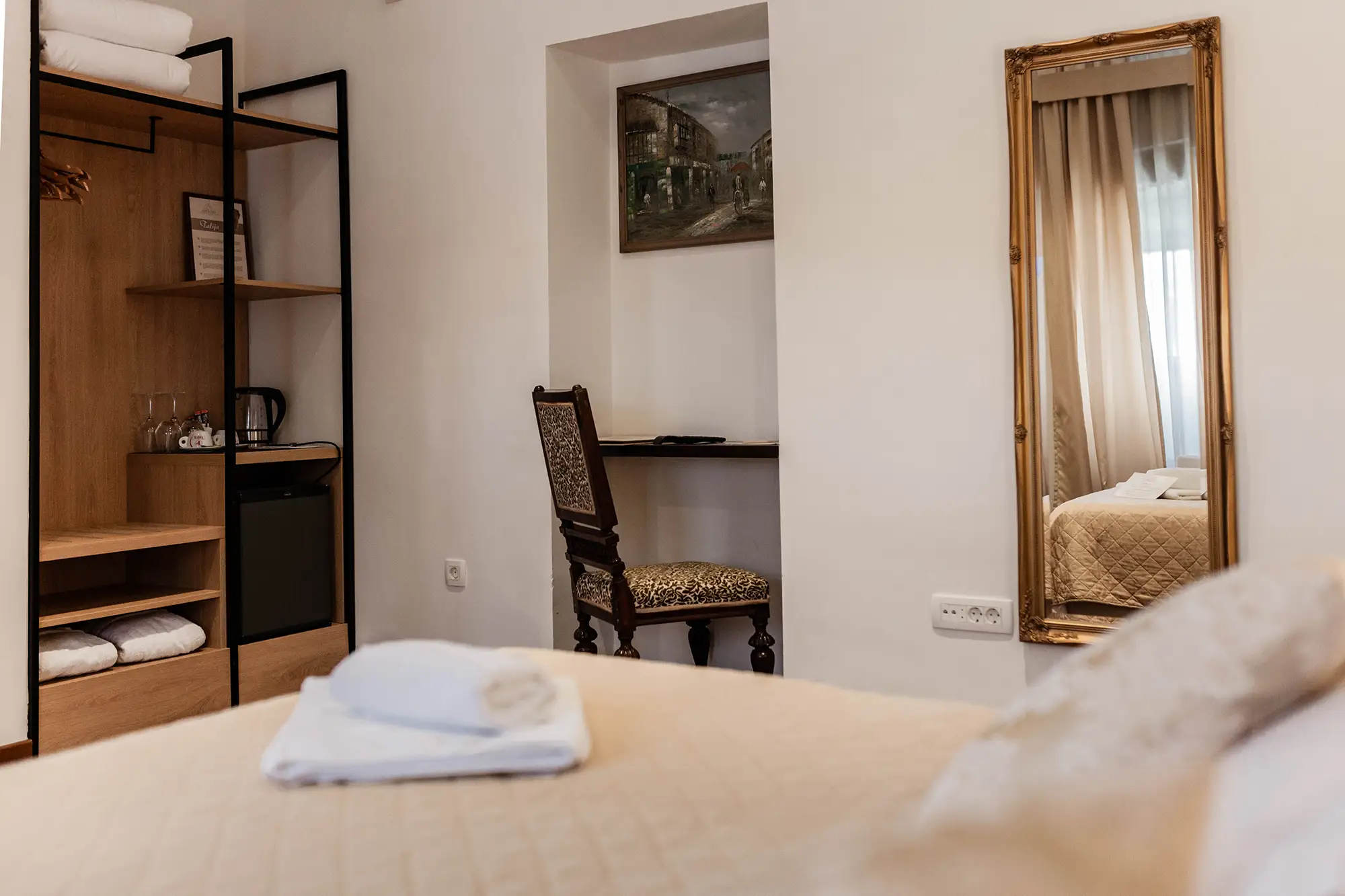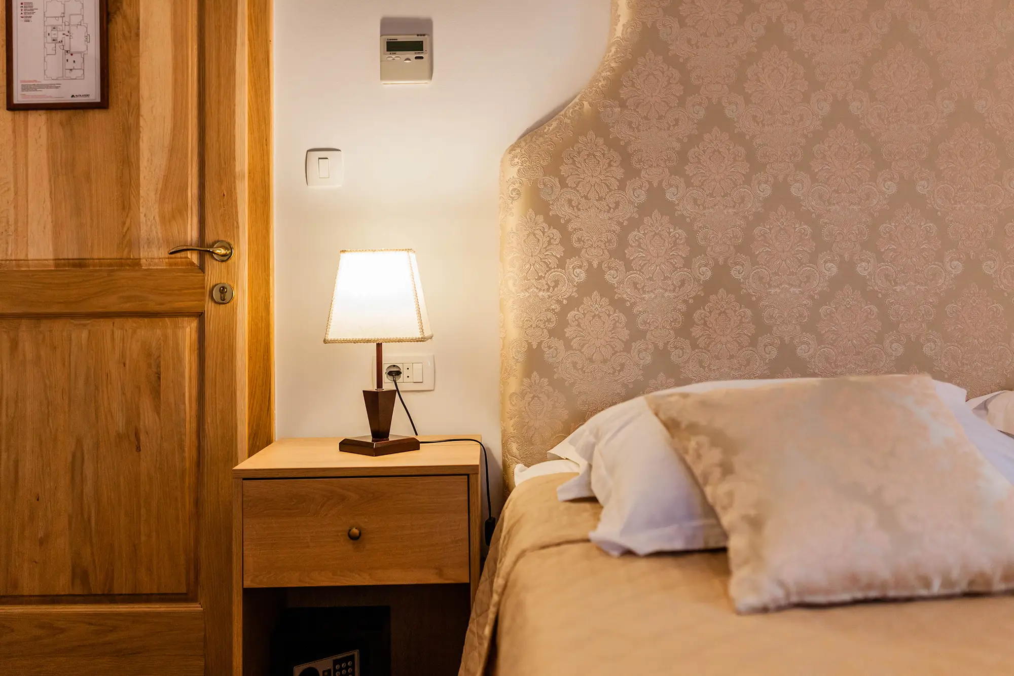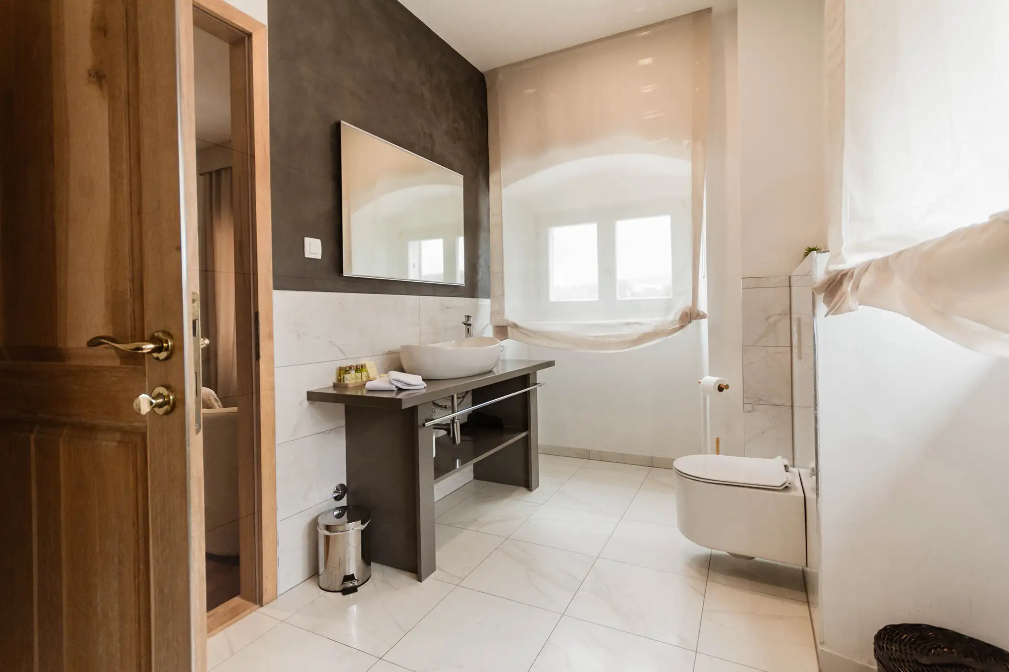 Superior soba Talija površine 36 m2, s pogledom na vrt. Sastoji se od velike spavaće sobe s tapeciranim super king size krevetom, ormara, sjedećeg prostora i kupaonice s tušem. Namještena u toplim nijansama s tamnim detaljima.